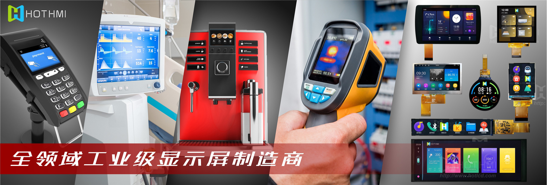 HOTLCD創(chuàng)立22年來(lái),已開(kāi)發(fā)出超過(guò)2000款標(biāo)準(zhǔn)和非標(biāo)準(zhǔn)液晶顯示屏及模組,廣泛應(yīng)用于人工智能、5G通訊、無(wú)人機(jī)、物聯(lián)網(wǎng)、車聯(lián)網(wǎng)、智能家居、智能穿戴、智慧交通、儀器儀表、醫(yī)療設(shè)備、工控設(shè)備、電力設(shè)備、勘探設(shè)備、航空航天、軍事裝備等諸多先進(jìn)領(lǐng)域。